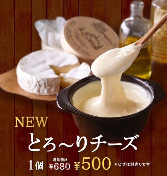 このピザーラ自慢のナチュラルチーズの美味しさをお楽しみいただける「とろ~りチーズ」を180円割引の特別価格500円で販売いたします。