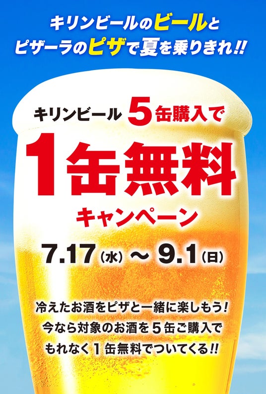 ≪【ピザーラ夏フェス】 第一弾(3)「キリンビール5缶購入で、1缶無料でついてくる」キャンペーン≫