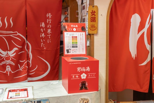 男梅みくじの1等~3等の景品としてお渡しする「男梅×大黒湯オリジナルグッズ」は大黒湯物販にて数量限定で販売いたします。また、大黒湯オンラインショップでの販売も予定しております。