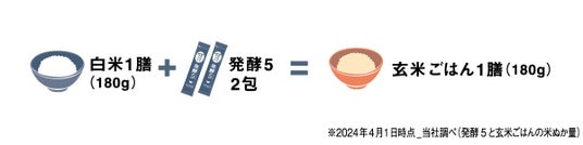発酵5(2包)で玄米ごはん1膳分(180g)の米ぬか量が手軽に摂れます。