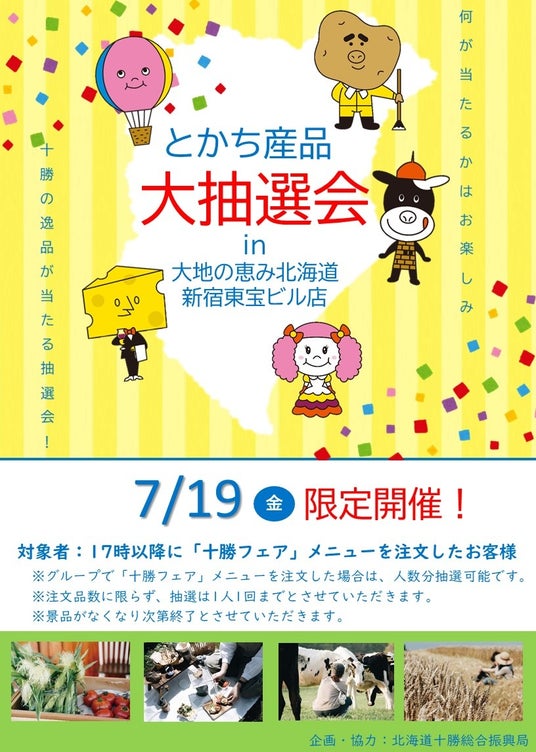 7月19日(金)17時以降に「大地の恵み北海道 新宿東宝ビル店」でフェアメニューを注文し