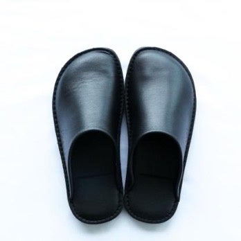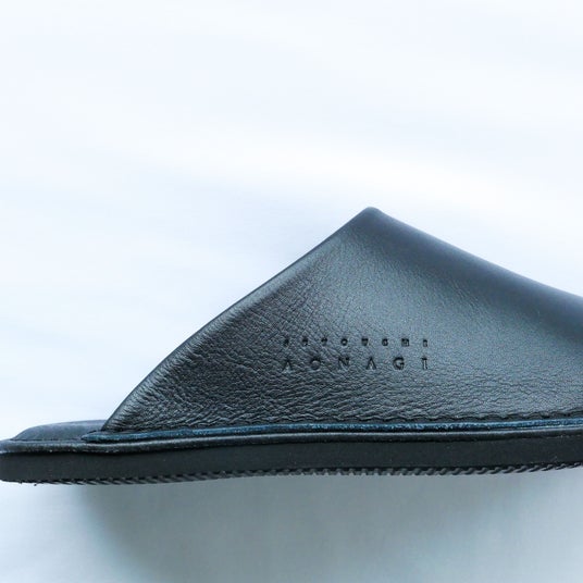 瀬戸内リトリート青凪のお部屋で使用しているハンドメイドのルームシューズ。地元愛媛県のサンダル老舗企業との共同開発にて、熟練した職人がオリジナル製作しています。イタリアに本社のあるビブラムソールを使用した贅沢な一足です。