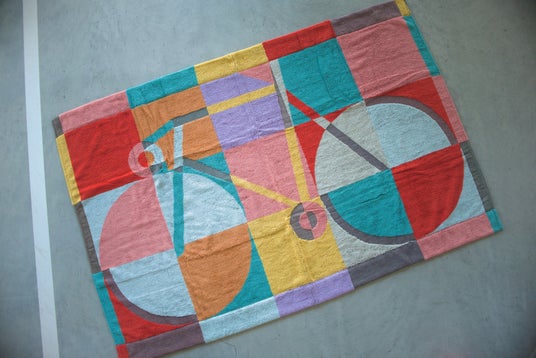 競輪は基本的に9名で行うスポーツであり、車番(レーズごとに設定される選手番号)ごとに色が異なります。この競輪の車番で使用される9色で自転車を描いているのがKEIRIN HOTELのブランケットのポイントです。愛媛の今治タオルを採用しており、心地よい肌触りが魅力。アウトドアやプール、海水浴など、これからのシーズンに活躍する一枚です。