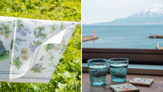 “いつかは訪れたい、最果ての島”、礼文島。この世とは思えぬ光景が広がる、島全体がまるでリトリートと言えるような特別な場所です。「三井観光ホテル」では、この島の魅力を伝えるべく、イラストレーターのmiltataさんが礼文島の草花を描いた「大判ハンカチ」と、北海道・小樽市に国内唯一の浮き玉製造工場を構える浅原硝子製造所による「浮き玉グラス」をオリジナルグッズとして制作しました。