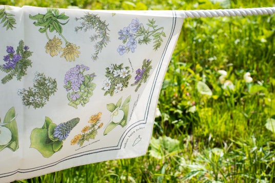 今回のハンカチでは、長年守り続けられてきた礼文島固有の植物たちを古書に出てくるようなタッチで描かせていただき、天地など向きは作らず、生成りの布の上に礼文島の植物たちをばらっと並べたような雰囲気で描かせていただきました。