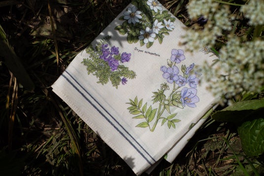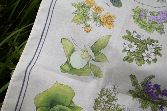 「失われゆく花たち。島の未来に想いを寄せて。」をコンセプトに、イラストレーターのmiltataさんが礼文島の草花を描いた「大判ハンカチ」。礼文島には、固有種であるレブンアツモリソウをはじめ400種以上の草花が生息し、その多くは環境の変化などによって絶滅危惧種や希少種に指定されています。これらの礼文島でしか見られない草花や絶滅危惧種を中心にデザインされたハンカチを手にすることで、少しでも礼文島の未来の花々や自然に想いを馳せるきっかけになれば、という願いを込めて完成させた一枚です。