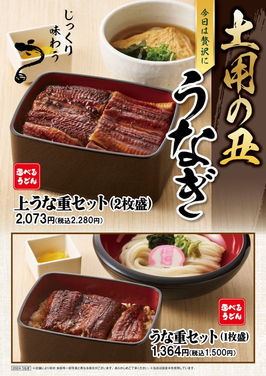 「土用の丑の日」には、人気のふんわりやわらかいうなぎと得得自慢のうどんのセット「うな重セット」「上うな重セット」がおすすめです。この機会にぜひお召し上がりください。