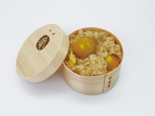 看板商品の“竈出汁(おくどだし)”でもち米と栗を炊き込んだ、もちもちのおこわです。