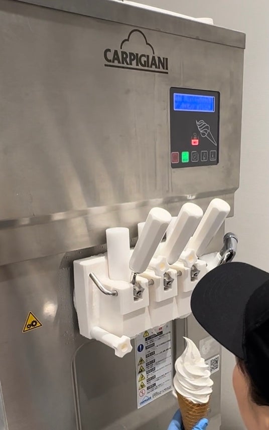 ふわふわ食感の秘密はイタリア製のソフトクリームメーカーのフェラーリと言われているカルピジャーニ使用