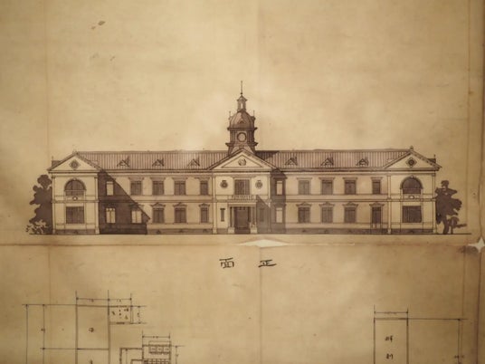 明治時代の建設当時に描かれた 北海道大学旧農学部校舎の完成図 (北大資料館蔵)