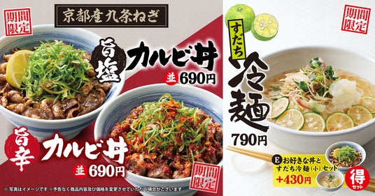 株式会社物語コーポレーション(本社:愛知県豊橋市/代表取締役社長:加藤 央之)が展開する、「焼きたてのカルビ丼」と「ユッケジャンスープ」の専門店『焼きたてのかるび』は、2024年7月25日(木)より期間限定商品の「京都産九条ねぎの旨辛カルビ丼」と「京都産九条ねぎの旨塩カルビ丼」を販売いたします。