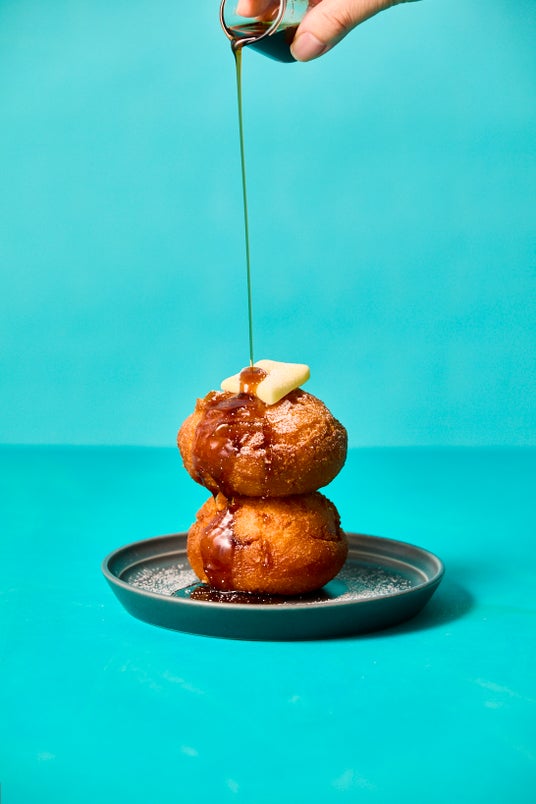 お好みでメープルシロップをかけることで甘じょっぱさがクセになり無限のループをお楽しみいただけます。外はカリっと、中はふんわり食感に大変身させた、その名も「donut pancake」。