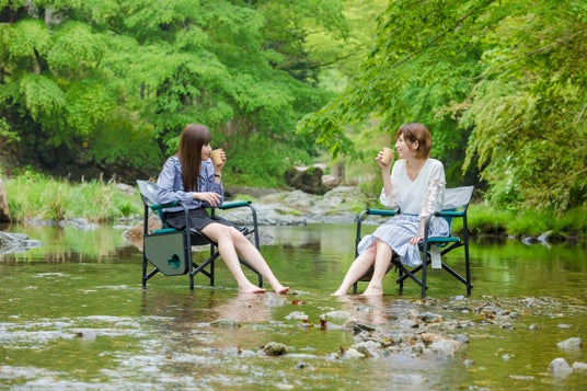 レンタルチェアは無料 足を浸すとひんやり気持ちがイイ高麗川でのチェアリング