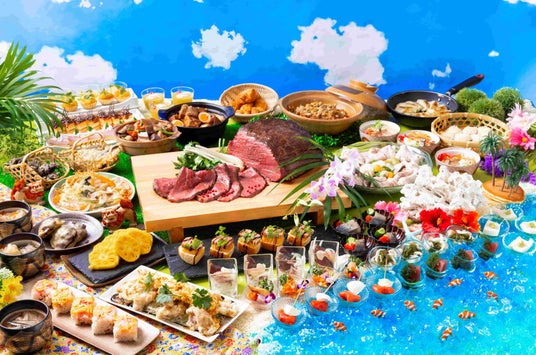 【休暇村奥武蔵 九州・沖縄フェア 宿泊プラン】 今年はファミリービュッフェと題して「九州・沖縄フェア」を開催します。1品1品こだわり抜いた個盛のお料理の他、ライブインパクトキッチンでは沖縄のラフテー・もずく・ジーマーミー豆腐、九州の餃子・豚しゃぶ・皿うどん・豚骨ラーメン等をご用意。さらに、デザートにはサーターアンダギーなども並び、まるで「ゆんたく」気分です。