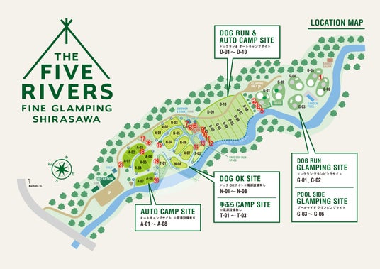 2022年4月より群馬県沼田市にて、森、サウナ、プール、川のせせらぎ、ドッグランを併設した、最高のリトリートを体験するグランピング&キャンプリゾート『THE FIVE RIVERS FINE GLAMPING 群馬白沢』を展開しております。