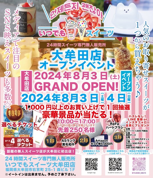 全国100店舗の美容サロンを展開する株式会社Createur(クレアトゥール)(所在地:広島県中区、代表取締役:乙津健太朗)は、おいしいスイーツを手軽に!をコンセプトに~無人スイーツ販売店~「いつでもスイーツ大牟田店/福岡県大牟田市」を8月3日(土)にオープン致します。