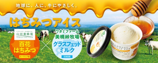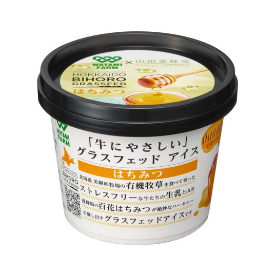 今回、第7弾として、北海道ワタミファーム美幌峠牧場のグラスフェッドミルクと山田養蜂場の蜂蜜を使用した「グラスフェッド~蜂蜜アイス~」を販売いたします。