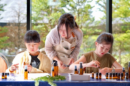 軽井沢プリンスホテルが所有する矢ヶ崎の森で採取した樹木素材からアロマを抽出。軽井沢アロマを使用した、世界にひとつだけの軽井沢オリジナルミスト(50ml)作りを体験できます。