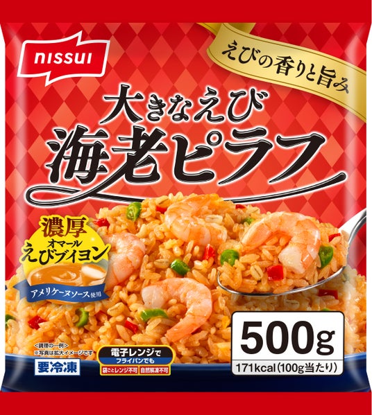 ニッスイは、2023年3月に専門店の味付けにこだわった「至福の味わいチキンライス」を発売。これまで冷凍チキンライスの購入比率が少なかった男性30~50歳代の支持を新たに獲得し、市場の活性化につながりました。今秋は、「大きなえび 海老ピラフ」を投入することにより、冷凍ピラフカテゴリーの拡大を目指します。
