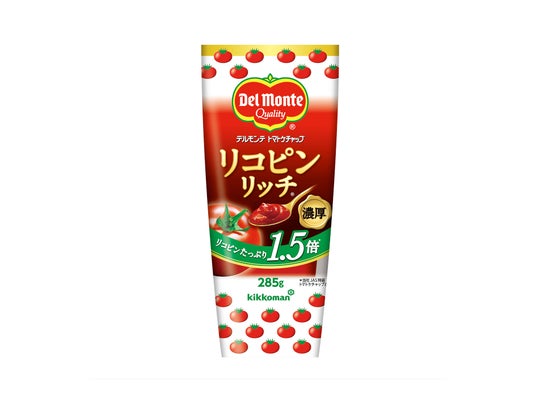 「リコピンリッチ トマトケチャップ」は、世界中の畑から厳選した完熟トマトと、芳醇でフルーティーな味わいのパイナップルビネガーを使用しています。リコピンを1.5倍(*)含み、濃厚さと甘さが特徴のトマトケチャップです。