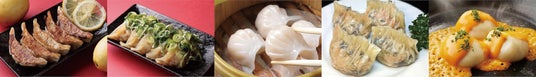 【京都餃子ミヤコパンダ】の人気No.1メニュー「香るレモン餃子」が登場。京都丹波で育った豚肉を使用し、レモンピールでアクセントをつけることで爽やかな風味に。京都産米酢を付ければ、華やかな味変も可能に。「白味噌仕立ての九条ねぎだく京餃子」は、その名の通り九条ねぎをたっぷりと使用し、焼き上がりにも九条ネギをさらにトッピング。ねぎ好きにはたまらない逸品。 神戸の人気中華店【香港点心楼】が送る本場・中国広東と同じスタイルを追求した本格的な「プリプリ海老蒸し餃子」は、プリプリのエビと筍のコリコリ食感がやみつきに。ワンランク上の「フカヒレ餃子」も見逃せない。 【餃子の宮でんでん】の「チーズのせ爆弾丸餃子」も丸いフォルムとたっぷりのチーズが女性に大人気。