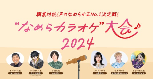 「パピコ」の魅力をより多くの方に知っていただくため、昨年に引き続き「パピコ なめらカラオケ大会2024」を、8月5日「パピコの日」に開催します。今年は、「声」を職業とするプロフェッショナルたちが、「パピコ」のTVCMの楽曲で、課題曲でもある「なめらか方程式」を歌唱してその点数を競い、声のなめらか王No.1を決定します。