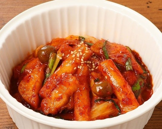 「トッポギ」は、餅をコチュジャンベースの甘辛いタレで炒めた料理で、もちもちとした食感で、噛めば噛むほどに甘辛いタレが染み出て美味しさが増します。トッポギのモチモチ食感も相まって、食べ応えのある料理です。