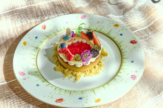 スペシャリテ(ピーターラビットが駆け回るピスタチオとベリーのタルト)