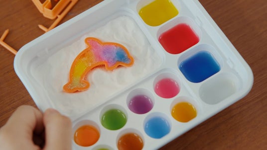 ・あか、あお、きいろの液をまぜてオリジナルの色が作れる