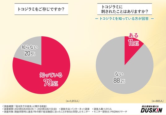 そこで、どのくらいの方がトコジラミという虫を知っているか質問したところ、約8割の方が『知っている(79.5%)』と回答しました。