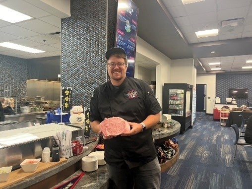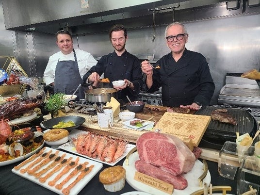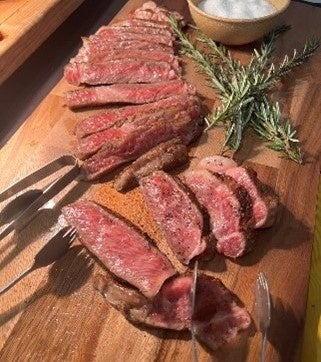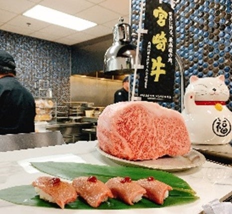 今回の採用に関しては、高級部位である宮崎牛ロース93.6kgを株式会社ミヤチクが手配し、「ステーキ」や「寿司」で提供され、非常に好評をいただきました。