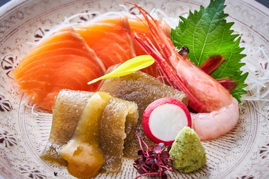 造り 信州サーモン 南蛮海老 いごねり 酢味噌 芽物いろいろ