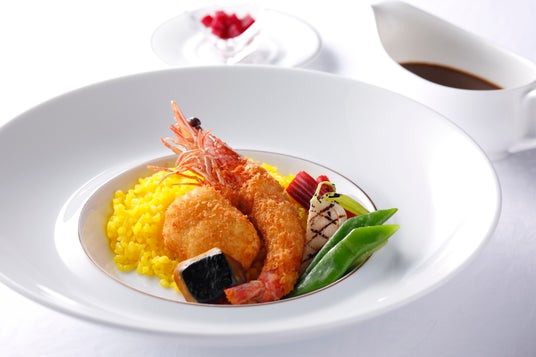 贅沢に舌平目で包んだ伊勢海老のクロケットと車海老のフライを盛り合わせたスペシャルなシーフードカレーライスをお召し上がりください。