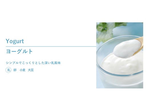 ヨーグルト水切りヨーグルトを使うことで、濃厚で豊かな味わいを出しています。半日ほど水切りをしてから手間暇かけて作るので、一口目からかなり違います。水切りヨーグルトならではの爽やかさと濃厚さが同時に感じられるフレーバーです。