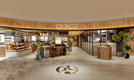 ブルーヤードは、1988年に開業した南青山「ブルーノート東京」を中心に、ライブレストラン、カフェ、ダイニングなど「音楽と食」を融合させた空間をプロデュースしてきた同社による、ダイニング/カフェスタンド/レコードショップと3つの業態をシームレスに繋げた複合型店舗。JR大阪駅西地区の新たな玄関口となる駅ビルという立地において、利便性と上質感を兼ね備えた居心地のよい空間で、梅田エリア利用者の多彩なニーズを満たします。