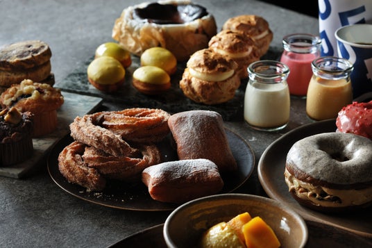 ダイニング同様、ニューオリンズ名物ベニエやチュロス、ベーグルサンドやキューバサンドなど、ブルーヤードならではのモダンアメリカンな商品が並ぶほか、カレーやスープなどの軽食メニューもご提供。