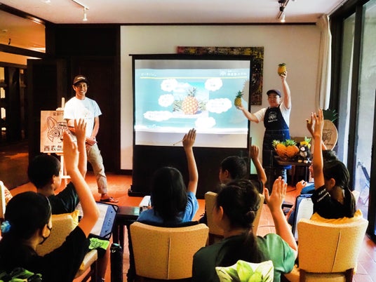 池村氏は、「昨年に引き続き、地元の子どもたちと直接お話ができる機会をいただけてありがたかったです。来年以降は畑でパインの植え付けなどの作業も一緒に体験できたら良いですね。」と語っています。このように地元の小学生、パイン農家、ホテルスタッフという三者が直接交流する機会を提供しました。