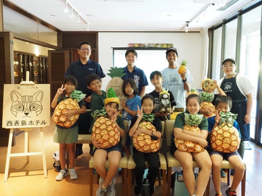 星野リゾートでは、「旅」を形作る上で欠かせない要素として、その土地ならではの魅力や体験の提供を大切に考えています。当ホテルが位置する西表島は、自然と人の暮らしが共生してきた島で、観光業や農業が盛んに行われています(*1)。そんな西表島を代表する特産品の一つにピーチパインがあります。ピーチパインの栽培には“酸性”土壌が適していると言われ、産地が限られている希少なパインです。後世にも西表島の自然や文化を残していくためには、地元の方々が地元の魅力を理解し、関心を高める取り組みが重要だと考えています。そこで、後世を担う子供たちに、改めて地元のピーチパインの魅力を知り、地元への誇りや愛情を育てるきっかけを提供したいと思い、本イベントの開催に至りました。