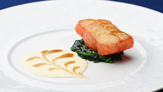 ・醒井養鱒場のニジマスのポワレ じゃがいものクルスティアンを鱗に見立てて ~フランスの偉大なる料理人へのオマージュ~