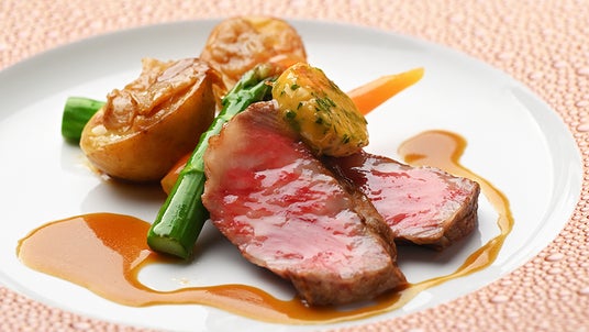 ・近江牛サーロインのグリルと新じゃがのステック・フリット風 キャフェ・ド・パリバターを添えて~フランスの国民食をボーセジュールのスタイルで~