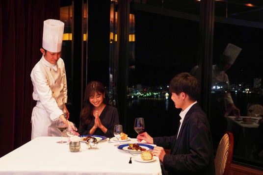 今年の夏、世界的スポーツの祭典が開催されるフランスの美食を、第51回 ル・テタンジェ国際料理賞コンクール世界大会2位の受賞歴を持つ料理長 坂田 知昭が趣向を凝らしたコース料理で表現いたします。今回のコース料理は、滋賀県の代表的な食材である近江牛や醒井養鱒場のニジマスなどの滋賀県産食材を使用し、フランスの伝統的な調理法を用いて料理長坂田が夏のフランスを思わせるメニューへアレンジしお届けいたします。ホテル最上階からの絶景広がる贅沢な空間の中で、近江牛を使いフリジア帽を表現した前菜を始まりに、フランスの食べる芸術といわれるパテ・アン・クルート、ニジマスを使用しフランスの偉大なるシェフのスペシャリテをオマージュした魚料理、近江牛はフランスの王道料理をアレンジしたメニューでお楽しみいただきます。