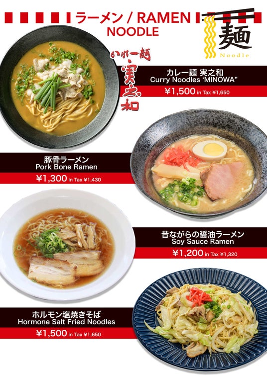 ラーメン / カレー麺 実之和 1,500円 +税 など