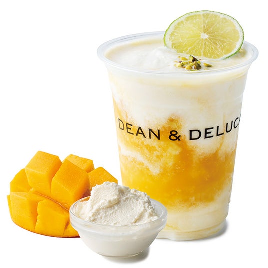 甘みがギュッと凝縮された完熟マンゴーのフラッペに、ミルクとはちみつを合わせてつくったリコッタクリームをたっぷり絞り、フレッシュなライムを飾りました。濃密な舌ざわりを残したシャリシャリのマンゴーフラッペに、リコッタクリームの軽やかなコクが絶妙に溶け合い、とろりとまろやかなおいしさが続きます。