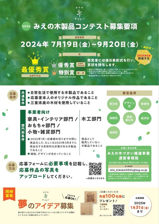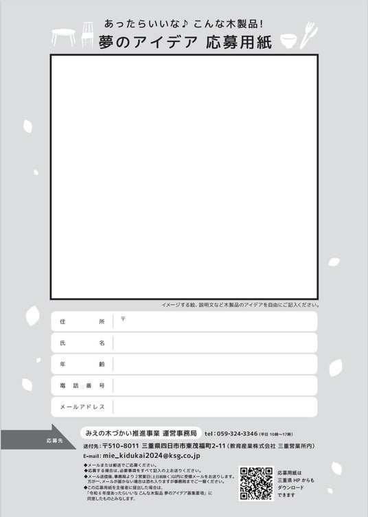 〒510-8011三重県四日市市東茂福町2-11 /メール:mie_kidukai2024@ksg.co.jp)まで、メールでご提出ください。