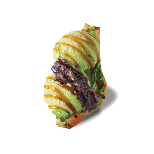 抹茶あんこ揚げたてのパンに低糖質抹茶クリームを詰め、宇治抹茶アイスをON!宇治抹茶ジェラートは抹茶の風味がしっかりと感じられるさっぱりとした口溶けが特徴で、黒蜜との相性も抜群です。トッピングのあんこときなこで甘さが加わり、さらなる味わいの深みを与えてくれます。和の贅沢な味わいを楽しみたい方におすすめです。