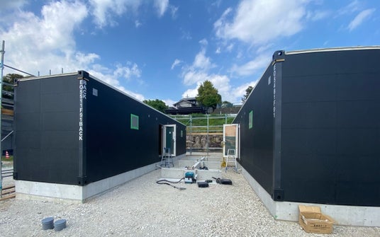 RC基礎の上に設置。内外装を宿泊施設にリデザイン工事を実施。