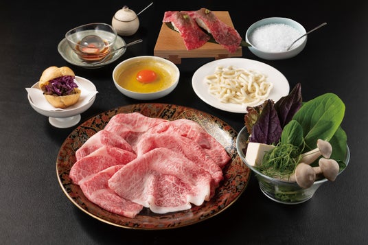国産和牛やブランド牛、銘柄豚など厳選した肉と季節ごとに各地から届く旬の野菜を、関西地方伝統のザラメで焼くすき焼や、しゃぶしゃぶでお楽しみください。
