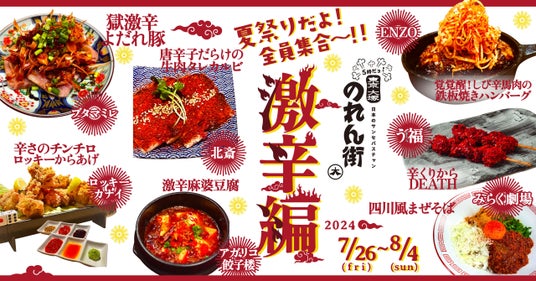 2024年7月26日~8月4日、東京大塚のれん街ではなんと!各店舗のスタッフたちが渾身の辛い料理を提案します!その名も「夏祭り 激辛編」。7店舗で開催しますのでお知らせいたします。