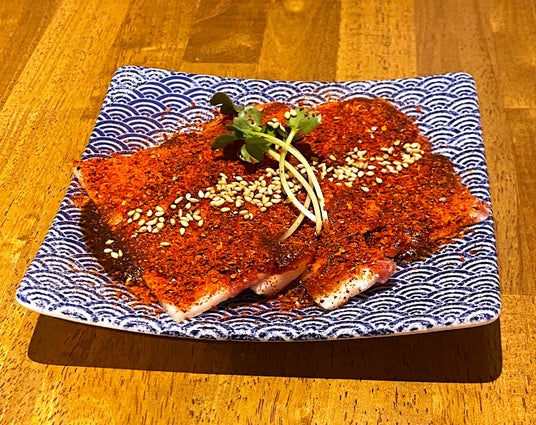 【酒肴北斎】 唐辛子だらけの生肉タレカルビ