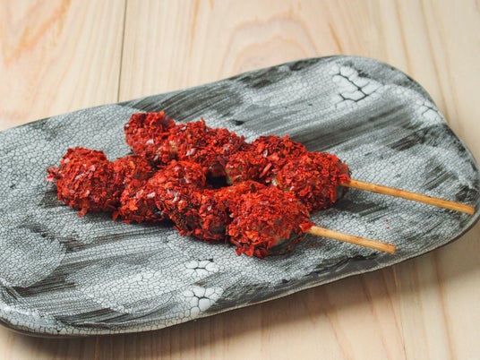 『辛旨が癖になる!辛くりからDeath 絶品の一串!』普段は見かけ倒しの旨辛な味付けですが、今回は、見た目通りの辛さとなってます。